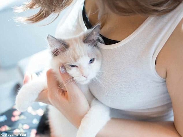 Японский фотограф Юки Аойяма объединил две популярные темы в альбоме Painyan (каламбур на японском, образованный из слов «грудь» и «мяу»). Кошки на фотографиях залезают женщинам в блузки, трогают лапами грудь и даже устраиваются между грудей. По словам Аойямы, его работа предоставляет читателям «максимально полный терапевтический опыт».