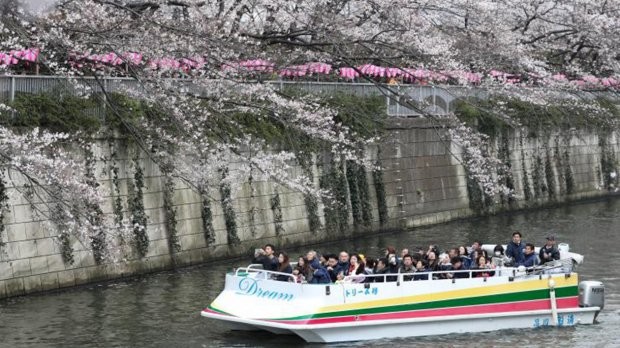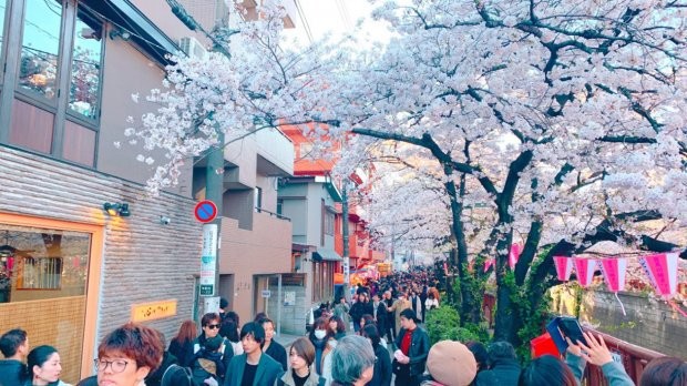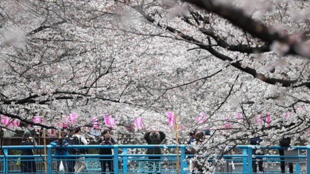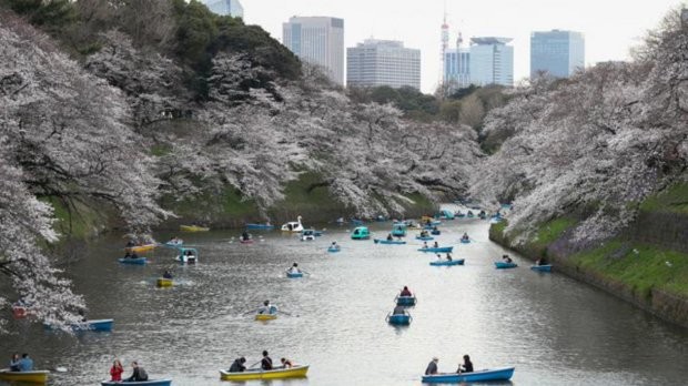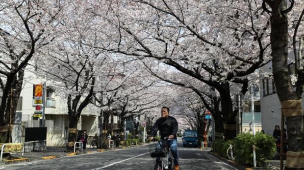 А автомобилям в Токио приходится обходить главные улицы с цветущими деревьями, поскольку сотни людей фотографируют и снимают на видео природный феномен и просто не дают машинам ходу.