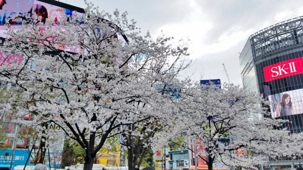 В Токио сакуры начинают расцветать в конце марта или в начале апреля и цветение длится лишь несколько недель.