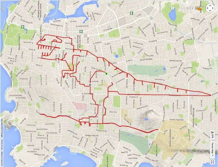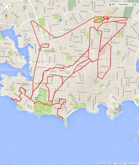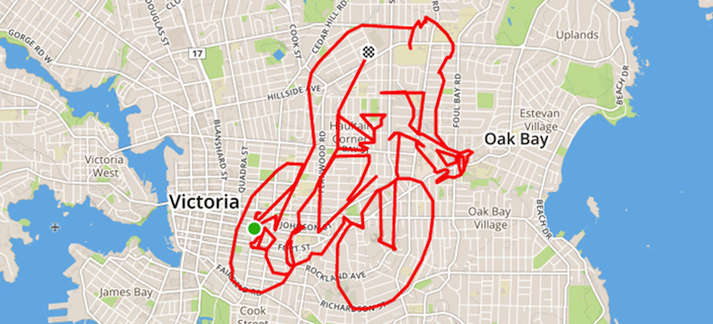 Креатив на велосипеде: канадский велогонщик рисует GPS-картины на картах