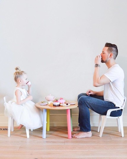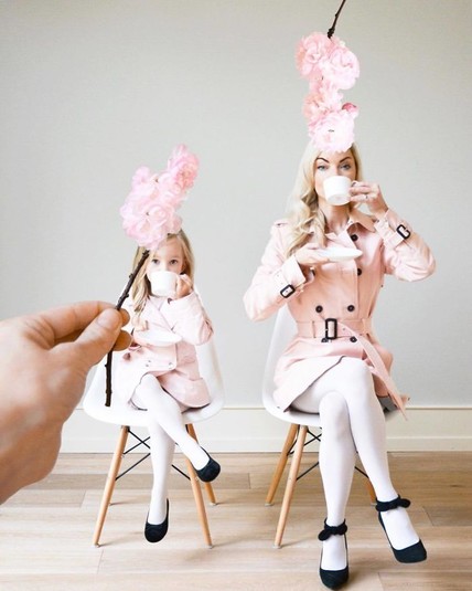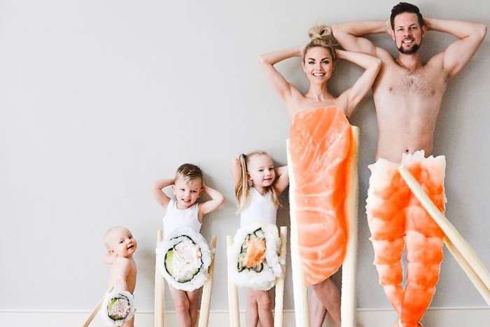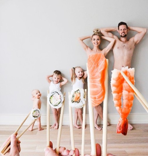 Кейт продумывает каждое фото до мелочей: выбирает для детей красивую одежду, делает им костюмы, строит декорации из подручных предметов, продумывает нетипичные ситуации. Не последнее место среди всех снимков аккаунта занимают кадры с использованием перспективы, где Кейт облачает своих родных в одежды из продуктов питания. Так бекон может легко стать папиными штанами, роллы - детскими трусишками, а суши - маминым платьем.