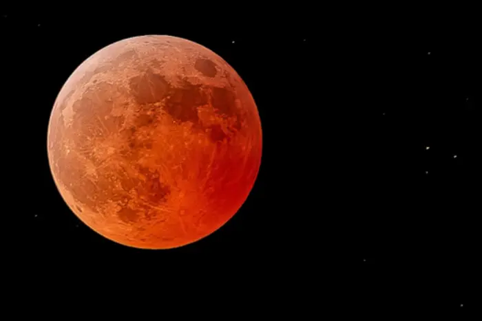 Проходячи через тінь Землі, Місяць набув глибокого червоного відтінку і перетворився на так званий «кривавий Місяць».