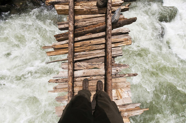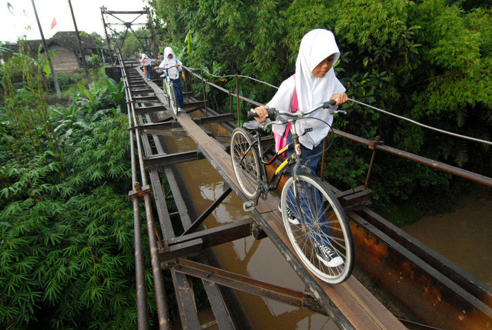 Порой совсем хлипкие конструкции отделяют пешехода от глубокой пропасти, в чём нас убеждают эти адреналиновые фотографии.