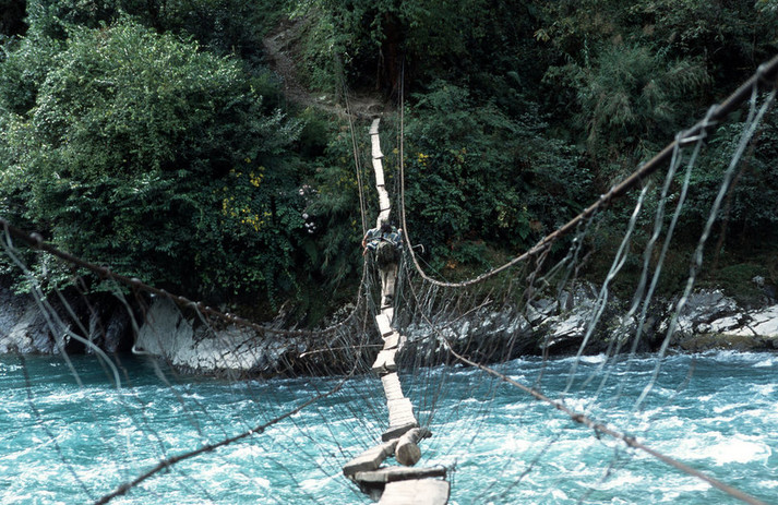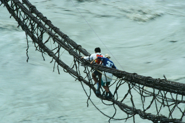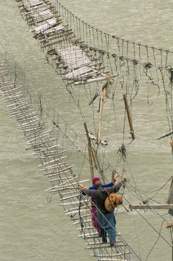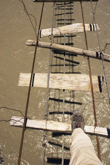 Во многих отдалённых уголках мира пешеходные мосты и дорожки сделаны из канатов и досок.