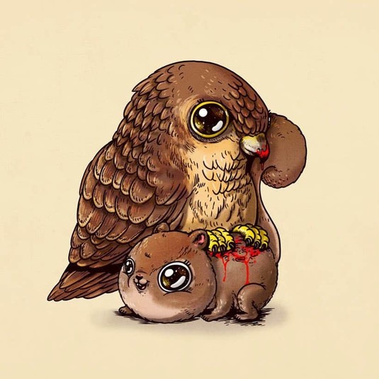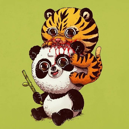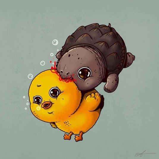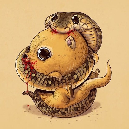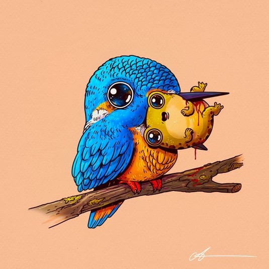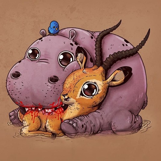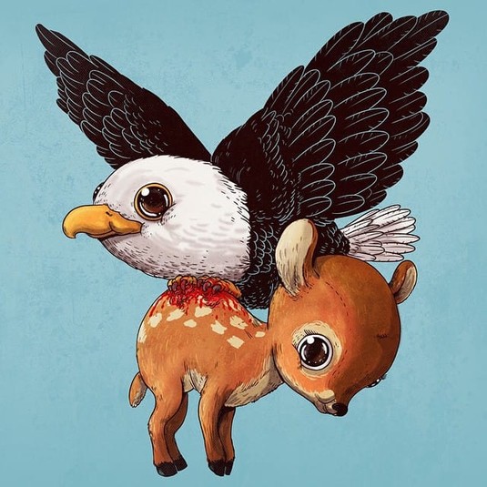 Алекс создал проект под названием «Круг жизни», где изобразил хищников и их жертв, но в невероятно очаровательном виде. Его иллюстрации вызывают некоторый диссонанс, но взгляд от них оторвать невозможно.