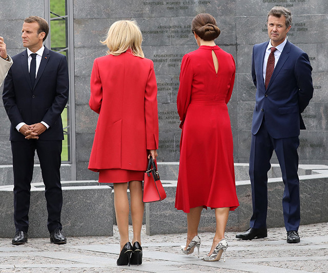 Леди в красном: Принцесса Дании и Бриджит Макрон впечатлили стильными луками в Копенгагене