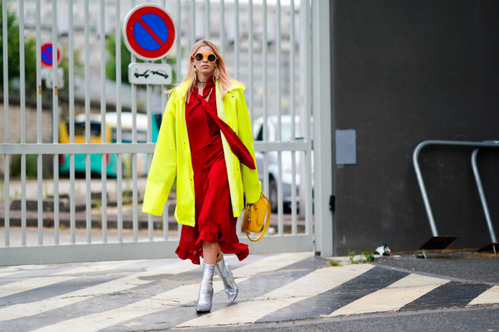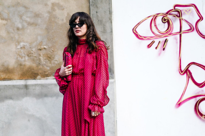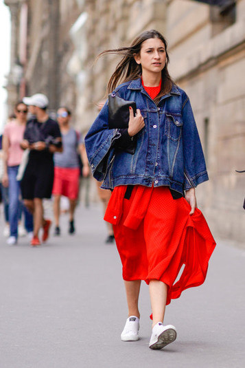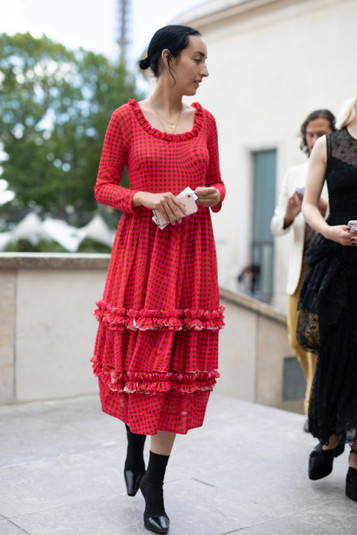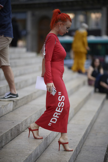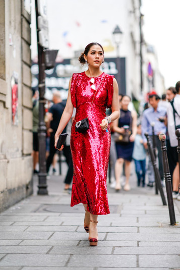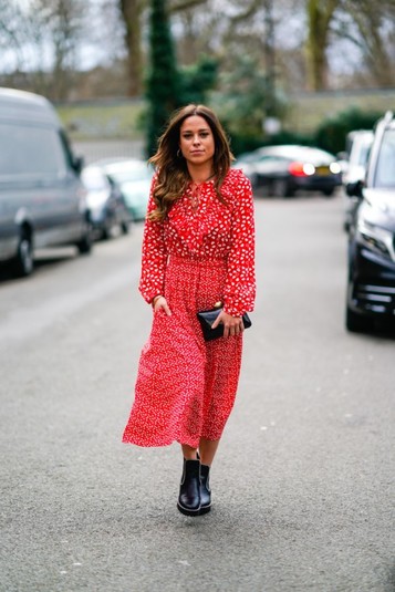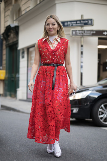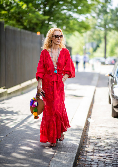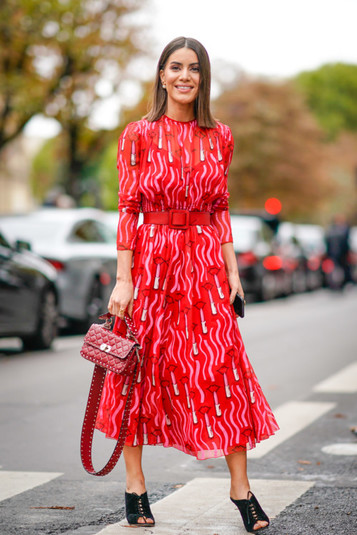 Этим летом красные платья все чаще попадают в объективы streetstyle-фотографов.