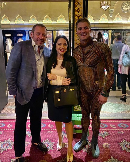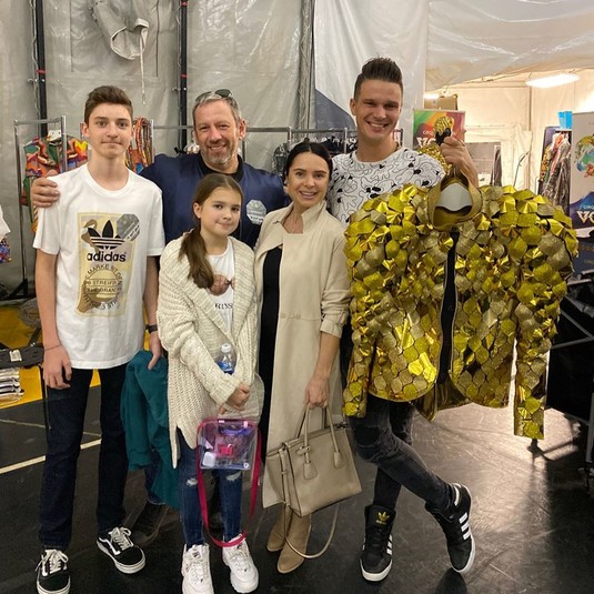 Нарядная Подкопаева со своим любимыми посетили этот мюзикл и сделали фото на память с гимнастом шоу Джастином Вириком.