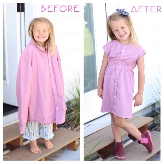Стефани начала просматривать обучающие уроки на YouTube, а затем попробовала сшить из ненужной рубашки красивое платьице для своей дочери. И у нее получилось!