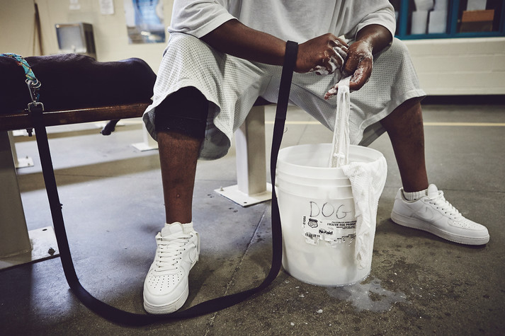 Как раз тогда, когда Тревиль писал свое эссе, в программе Paws for Life работал добровольцем фотограф Джон Дюбуа. Их с коллегой Шоном Кроуфордом пригласили заснять группу из первых пяти собак, которых отправили к заключенным. Фотограф с оператором шесть дней провели в тюрьме для особо опасных преступников, наблюдая за животными и их временными опекунами.