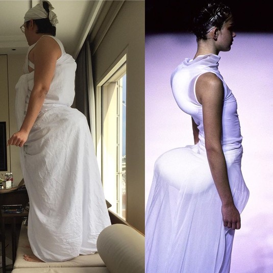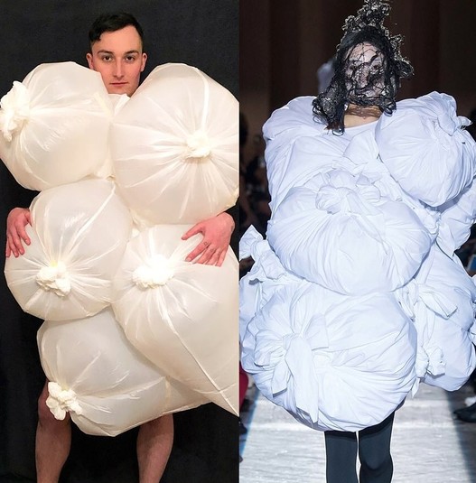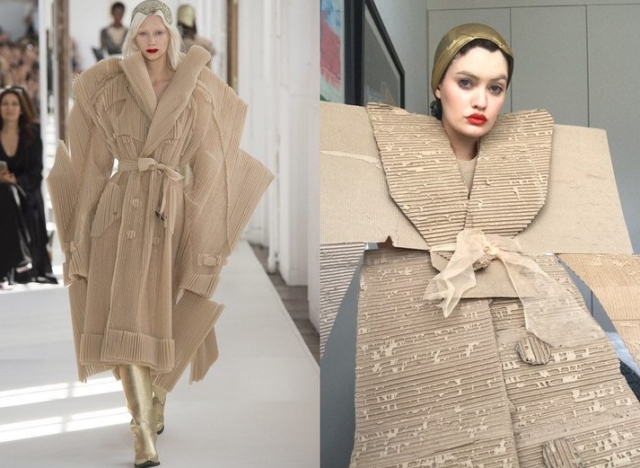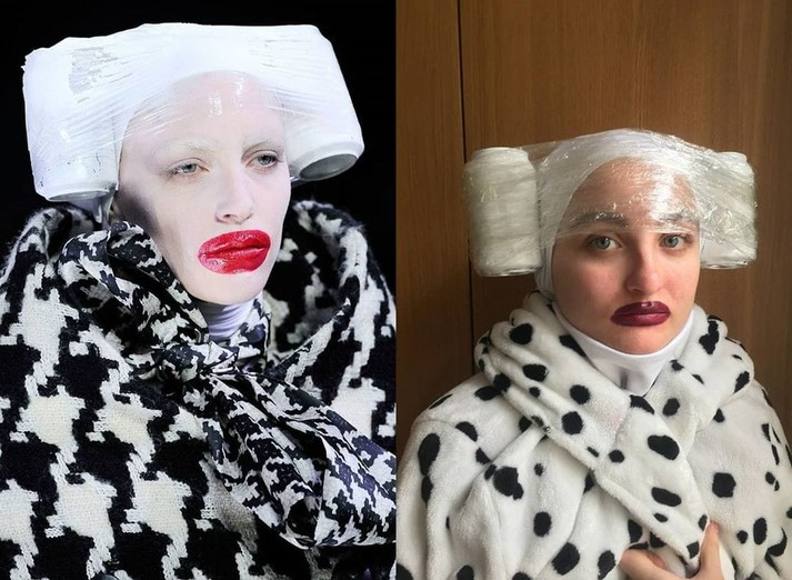 Вынужденное сидение дома в целях самоизоляции или карантина подстегивает воображение людей, и у них в головах рождается всё больше челленджей и флешмобов. Одним из них стал #HomeCouture от британского журналиста Джорджа Сервенти, который предложил повторять дизайнерские наряды из тех вещей, которые можно найти дома.