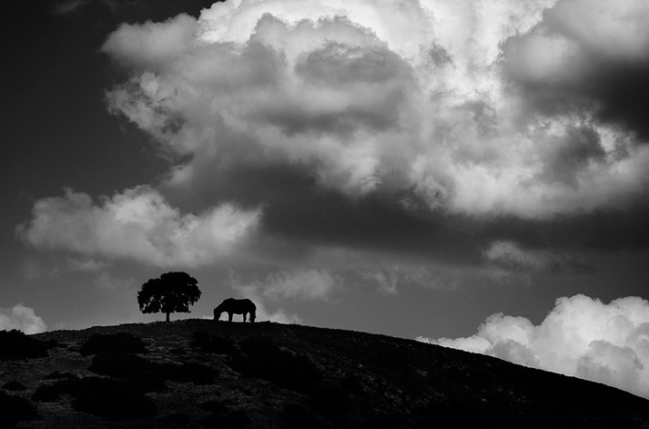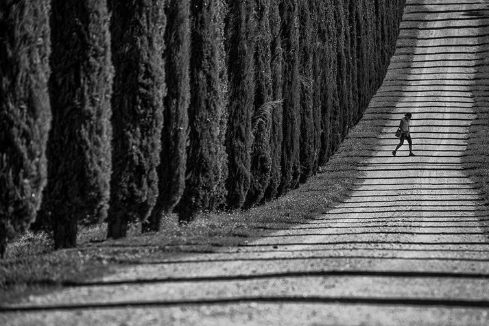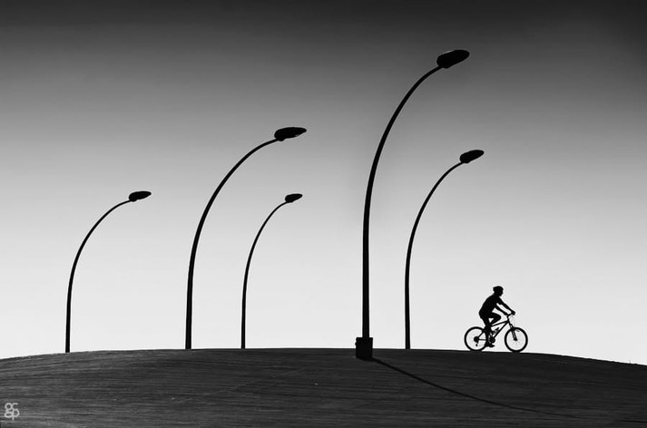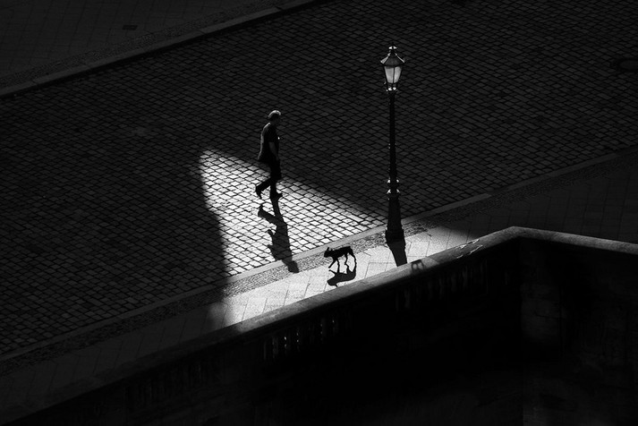 В снимках Гая Коэна, кажется, деревья что-то нашептывают путнику, фонари склонились и готовы двинуться вслед за велосипедистом, а тени прохожих буквально живут своей жизнью.