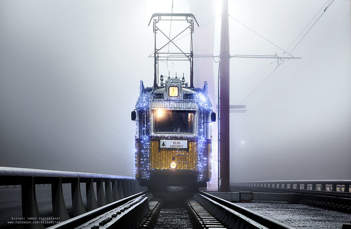 Магия Рождества: светящиеся трамваи и троллейбусы Будапешта от фотографа Тамаша Рицави