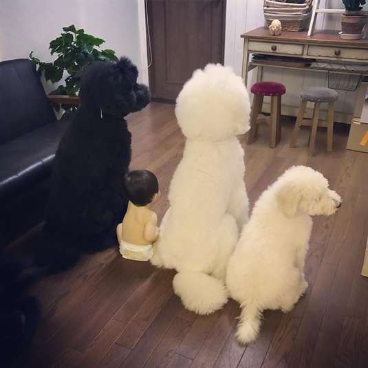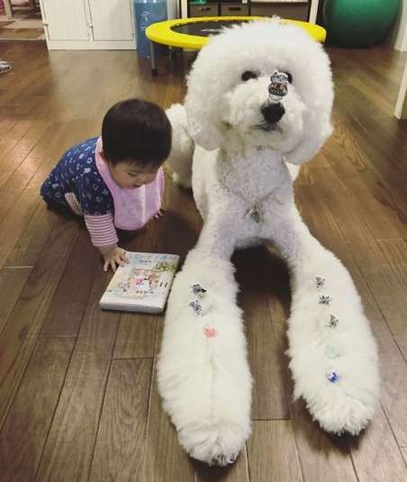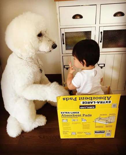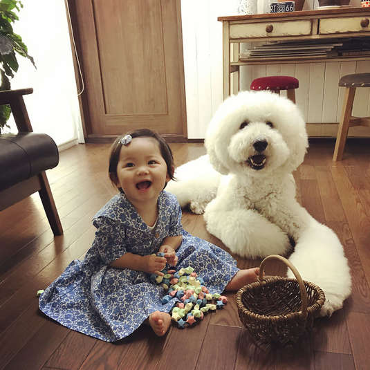 Годовалой девочке из Японии по имени Маме несказанно повезло - у неё есть королевский пудель Рику.