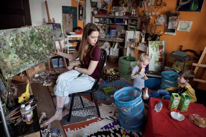«Мой проект — о женщинах, которые работают или занимаются любимым делом в присутствии своих детей. Одни отдаются своему хобби, и материальная сторона не так важна, для других работа — единственный способ выживания. Я постаралась максимально широко показать спектр профессий, где женщина может работать в присутствии своих детей.