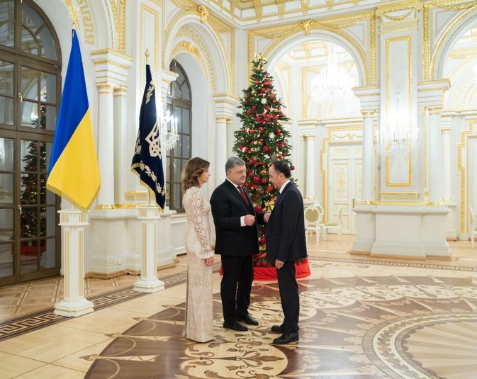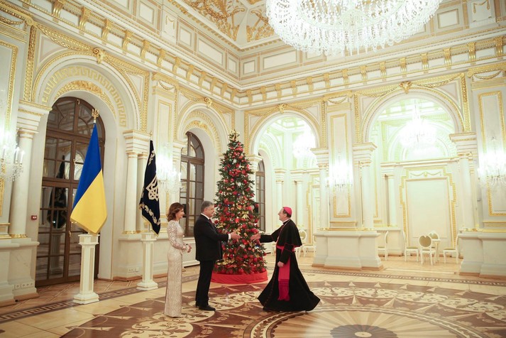 В ходе официальной встречи президента Петра Порошенко с иностранными дипломатами, его супруга Марина появилась в стильном бежево-золотистом платье. Мероприятие проходило 16 января в отреставрированном Мариинском дворце.