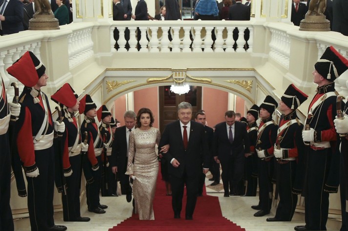 В пресс-службе первой леди уточнили, что это платье было изготовлено еще в 2011 году. Однако в статусе супруги президента Марина надела его впервые. Жена украинского лидера рассматривала несколько нарядов для этого выхода. Но в результате она решила не покупать новые платья. Тем более, что этот наряд хорошо подходил под торжественные интерьеры Мариинского дворца.