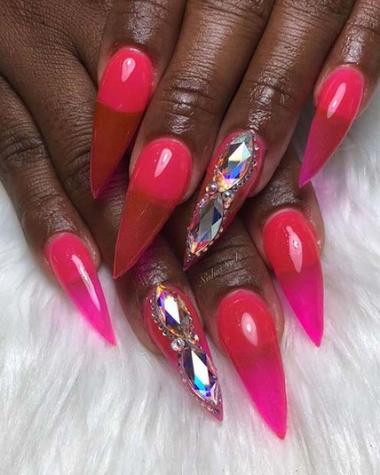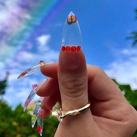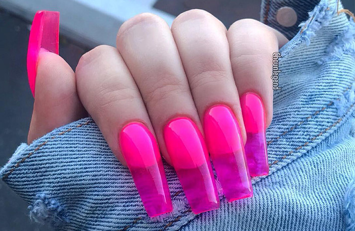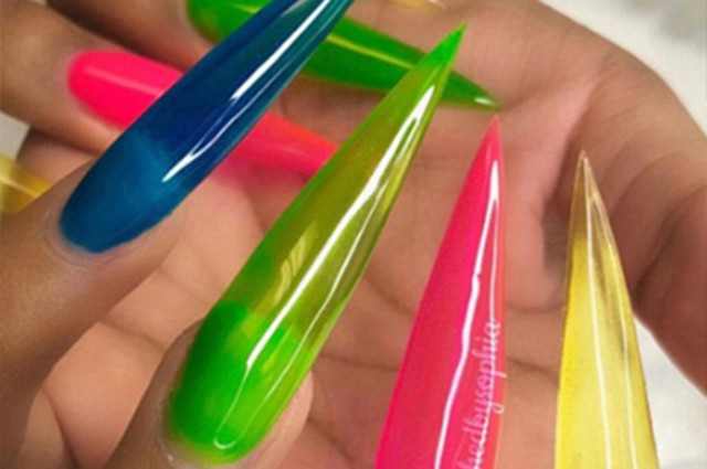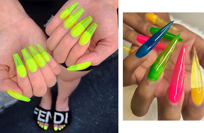 В 90-х длинные острые ногти, покрытые яркими кислотными цветами, были неоспоримым трендом того времени. Мода на так называемые Jelly Nails постепенно возвращается