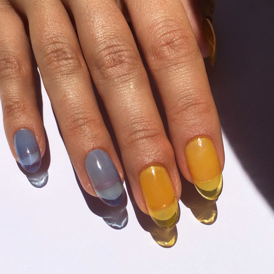 «К элегантности такие ногти не имеют отношения, скорее, это вариант похулиганить в отпуске, или же для юных ценительниц длинных, ярких ногтей. Делается такой маникюр прозрачными материалами для моделирования с добавлением цветных пигментов, чтобы добиться эффекта цветного желе»,— рассказала эксперт.