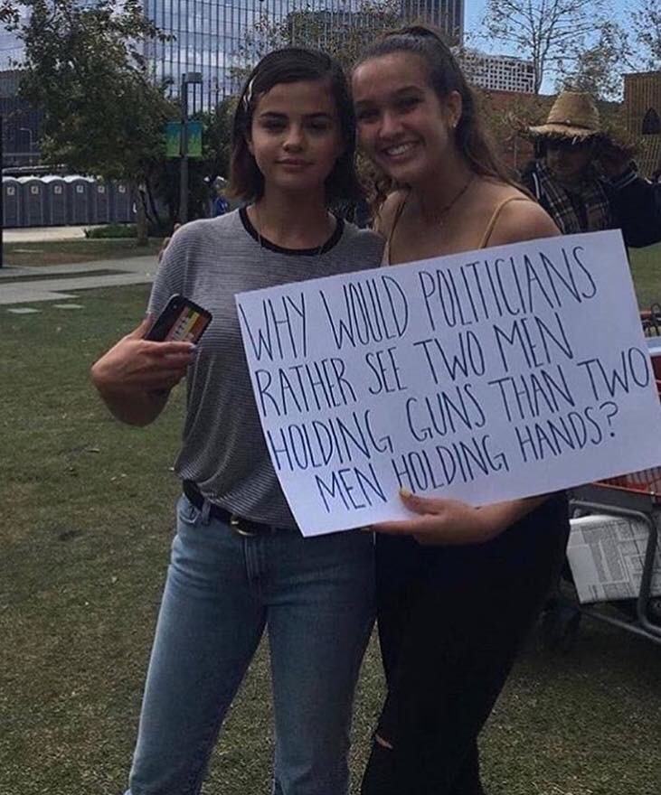 На протесты наряду с обычными американцами вышли мировые звезды. Среди них были актеры Джордж Клуни с женой Амаль Аламуддин, Риз Уизерспун, Лора Дерн, певцы Пол Маккартни, Рита Ора, Майли Сайрус и Селена Гомес, модели Кендалл Дженнер и Хейли Болвин.