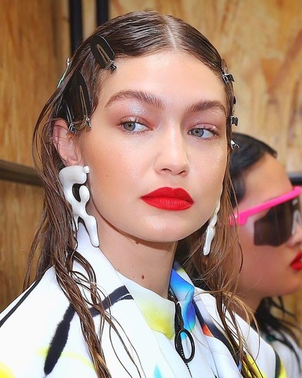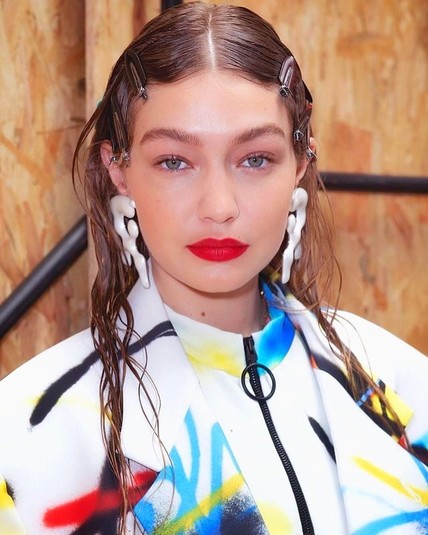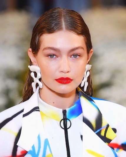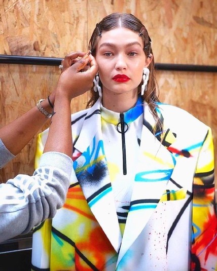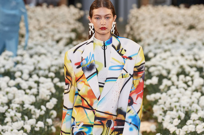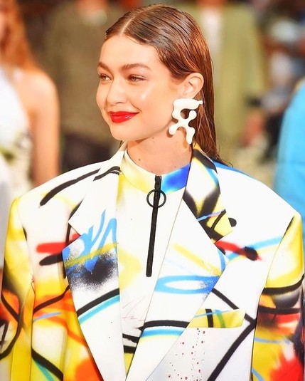 Массивные серьги и блейзер oversize: Джиджи Хадид стала звездой мужского показа Off-White в Париже