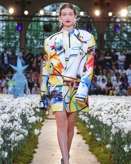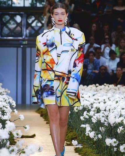 24-летняя модель прошлась по подиуму в костюме, который был разрисован граффити. Джиджи представила мужскую коллекцию