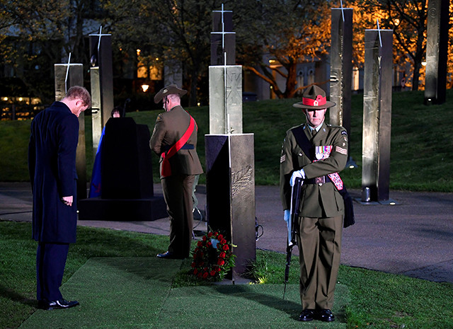 В ходе мероприятия была проведена минута молчания и прозвучал национальный гимн. После этого принц Гарри возложил венок к австралийскому мемориалу и оставил надпись в книге памяти. Западные СМИ пришли в восторг от стильного и одновременно очень строгого образа Меган Маркл и принца Гарри.