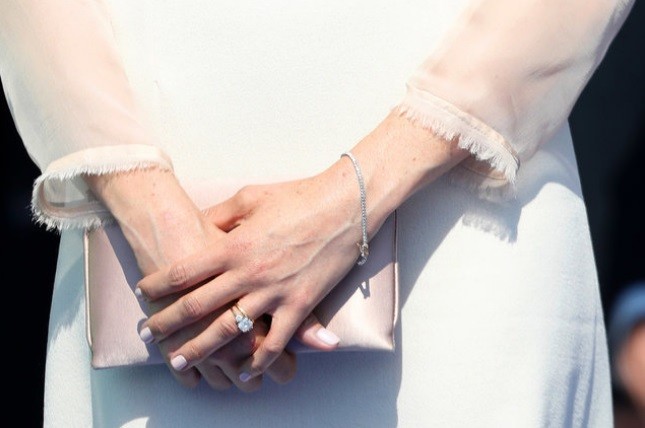 По случаю Меган Маркл сделала выбор в пользу британского бренда Goat, который давно числится среди фаворитов Кейт Миддлтон. Новоиспеченная герцогиня выбрала выполненный на заказ в бледно-розовом цвете вариант платья, которое еще недавно было на распродаже за 490 фунтов стерлингов, но уже полностью раскуплено. Меган дополнила образ шляпкой от Phillip Treacy, клатчем в тон и ювелирными украшениями.