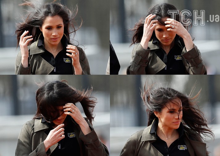 Специально по этому случаю 36-летняя Меган Маркл надела тренч цвета хаки и черные джинсы. Она отдала предпочтение стилю casual, не соблюдая королевского дресс-кода. В виде прически невеста Гарри оставила распущенные волосы, с которыми ей постоянно приходилось «воевать» из-за ветра на стадионе.