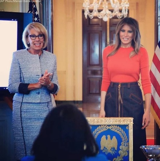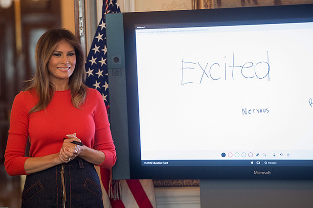 Супруга президента США Дональда Трампа продолжает отстаивать свой имидж иконы стиля. Она провела встречу с учащимися средних школ и обсудила проблемные вопросы в американском образовании.
