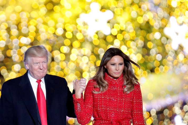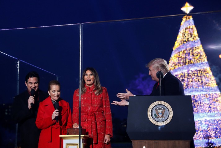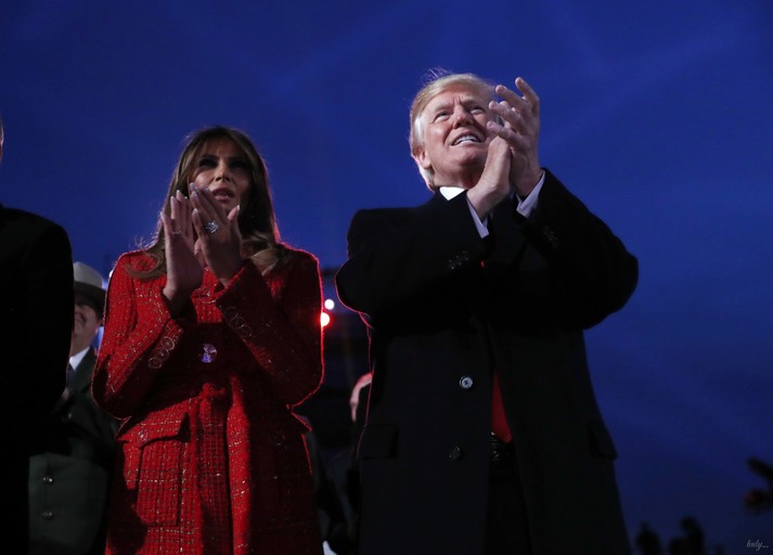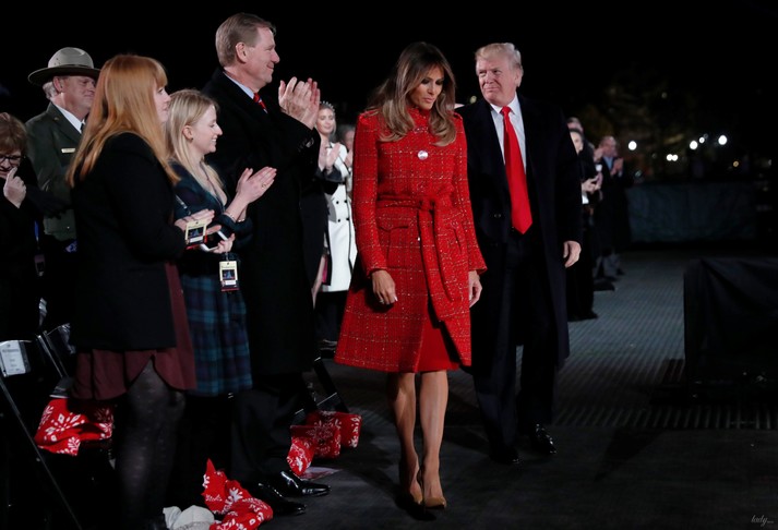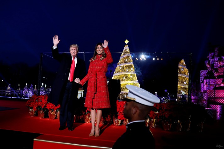 Мелания Трампа зажгла новогоднюю елку в красном пальто и на лабутенах