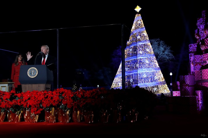 Первая леди США Мелания Трамп выбрала грациозный образ для торжественной церемонии зажжения главной новогодней елки США. 47-летняя супруга президента страны нажала на кнопку, которая включила свет гирлянды после того, как глава государства выступил с речью, в которой пожелал всем счастливого Рождества и нового года.