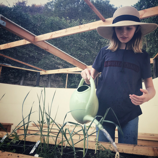 Ухаживать за их домашним огородом помогают ей Дочери Милы двухлетняя Даш и десятилетняя Эвер.