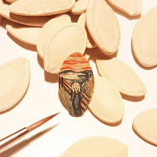 Миниатюрное искусство: Художник создал копии мировых шедевров на головках спичек, фисташках и бабочках