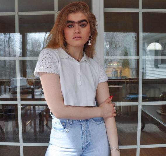 21-летняя София Хаджипантели прославилась в cети благодаря густым бровям. Девушка отказалась от коррекции и начала публиковать свои снимки в Instagram. Сейчас у нее 184 тыс. подписчиков.