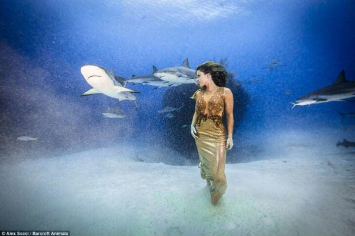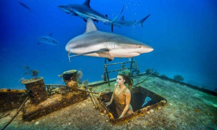 Модель снялась в подводной фотосессии с акулами без спецснаряжения