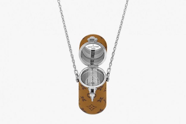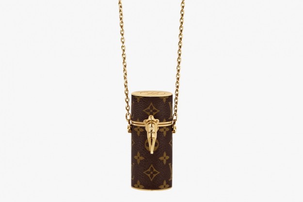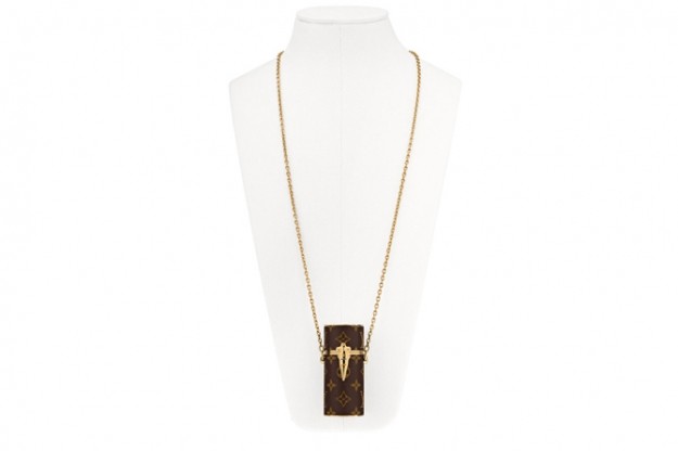 Чехол для помады Louis Vuitton выполнен из кожи, украшенной монограммой LV. Аксессуар можно носить на шее (специально для этого в комплекте с ним идет длинная золотистая цепочка) или носить через плечо, как мини-сумочку. Цена чехла для помады – 1390 долларов.