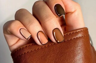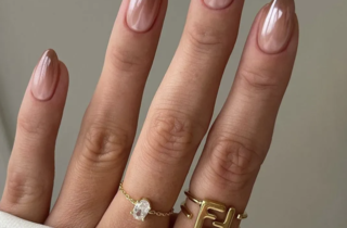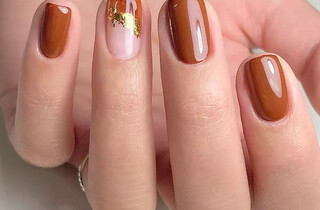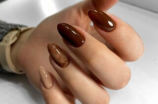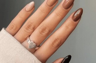 У акторки мигдалеподібна форма нігтів та карамельний відтінок покриття