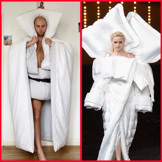 Модный карантин: пользователи соцсетей воссоздают подиумные образы из подручных материалов (фото)