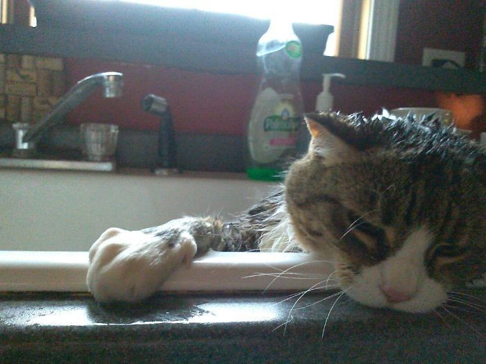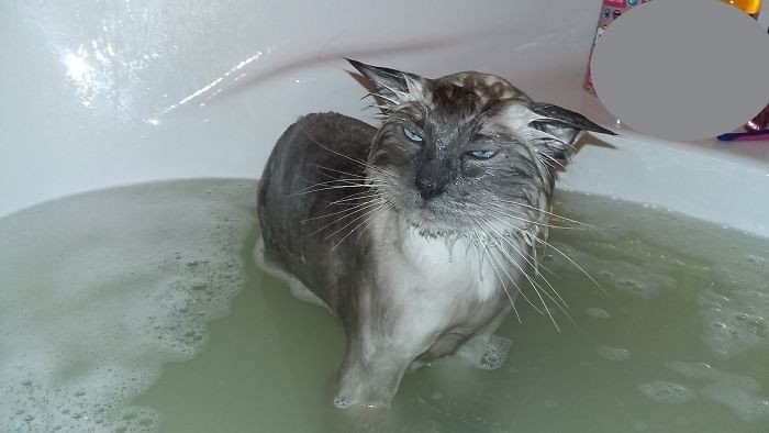 Мокрые и смешные: фотографии домашних питомцев, которые принимают ванну