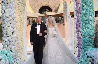 «Молодша дочка колишнього президента Дональда Трампа виглядала чудово в сяючій сукні від Elie Saab з довгими рукавами, фатою. Її світле волосся було викладене гладкими хвилями і прикрашене сережками з діамантами. Казковий захід на відкритому повітрі розпочався о п'ятій годині. Наречена у супроводі батька йшла проходом до прикрашеної квітами арки», – пише видання.
