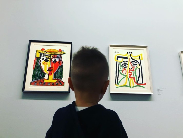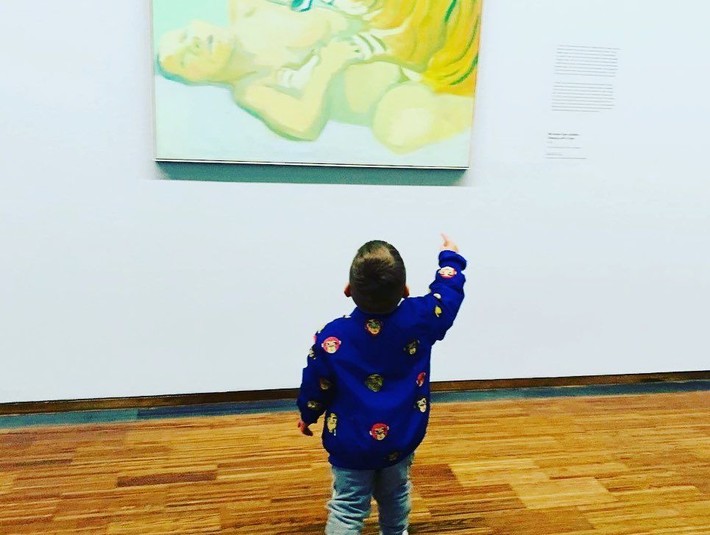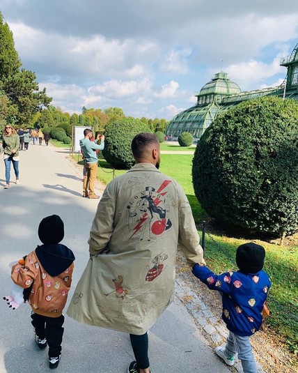А потом звездный отец показал, как он с малышами посетил галерею Альбертина в центре Вены.