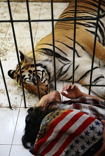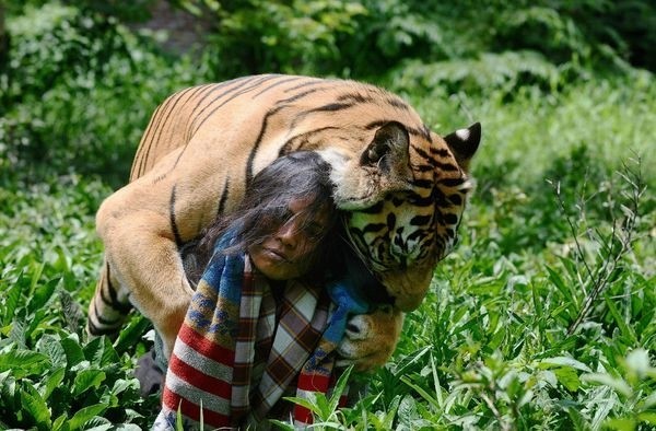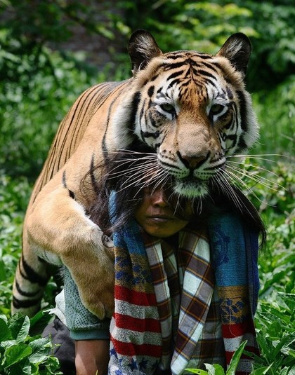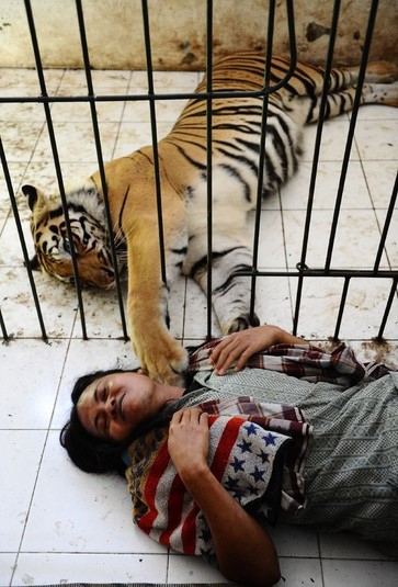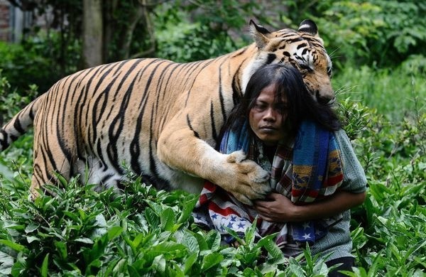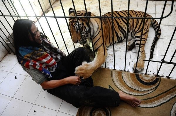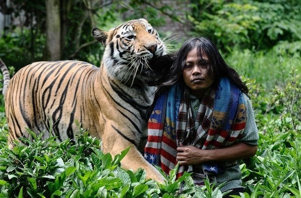 История этой необычной дружбы человека и тигра началась еще 6 лет назад в индонезийской провинции Восточная Ява, в городе Маланге. Хозяин 3-месячного тигренка попросил Абдуллу Шоле присмотреть за ней. С тех пор они стали неразлучны. 13 фото На весь екран