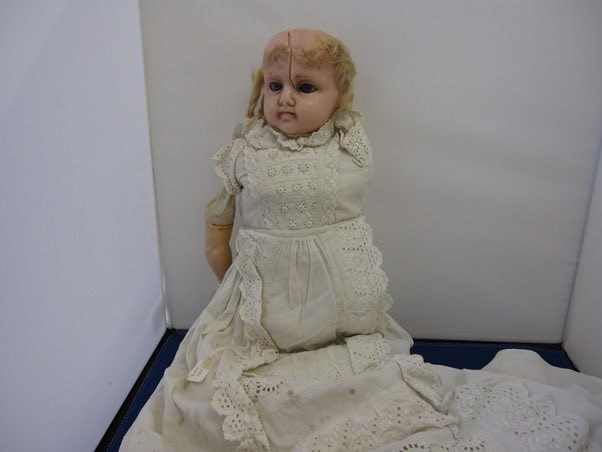 Так вот, карантин, в музеи никто не ходит, сотрудникам галерей по всему миру приходится как-то о себе напоминать сидящим в своих домах людях, вот им в голову и приходят идеи различных флешмобов в интернете. Вот, например, #CreepiestObject - под этим хэштегом музеи всего мира (в основном, конечно, британские) постят фотки своих самых странных в пугающем смысле экспонатов.