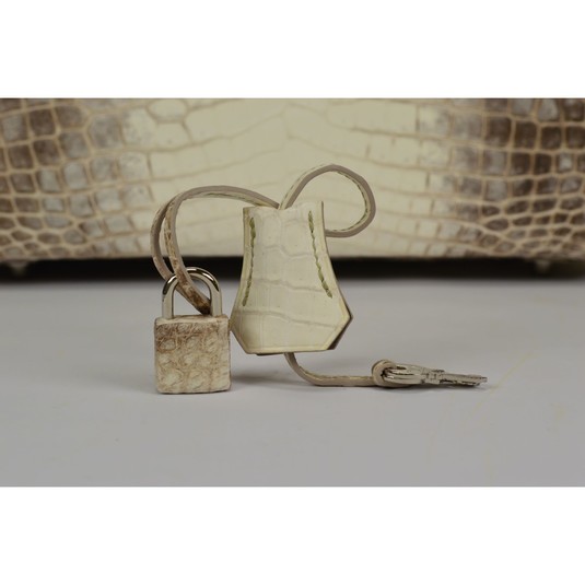 Новый владелец сумочки отдал за неё рекордные $382 тыс. Её фурнитура инкрустирована десятками бриллиантов. Эта модель получила название «Гималаи» в связи с тем, что в ней прослеживается перелив цветовой гаммы от серого до жемчужно-белого – как на горном хребте. Это объясняется уникальными свойствами кожи крокодила, из которой она изготовлена. Также все металлические элементы изготовлены из золота и других драгоценным металлов.