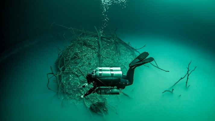 Погружаясь на глубину 30 метров, дайвер ожидает увидеть что угодно, но только не подобие озера, окутанного мистическим туманом.