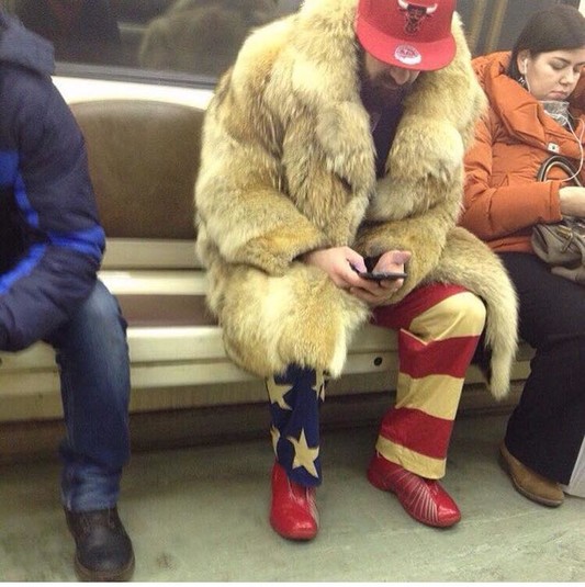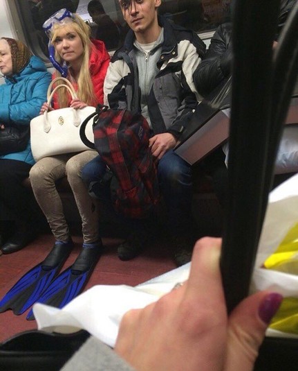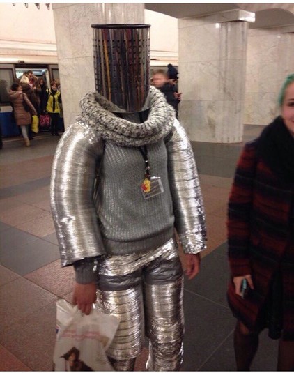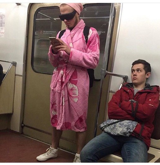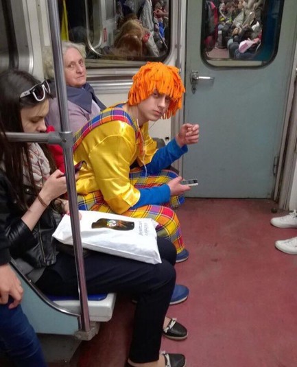 Очень радуют подписчиков фотографии людей, которые ездят в метро в костюмах мультипликационных персонажей, доблестных воинов в доспехах и даже в костюме настоящего циркового клоуна. Некоторые люди добираются на работу в спецодежде, а может просто решили повеселиться? Нам остается лишь догадываться.