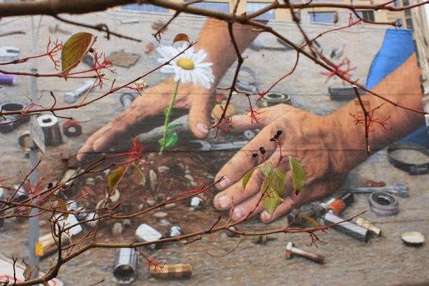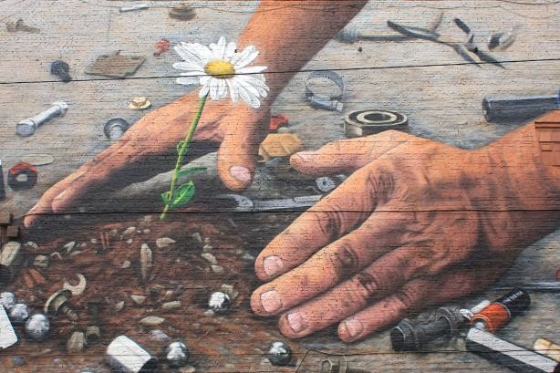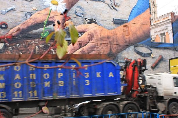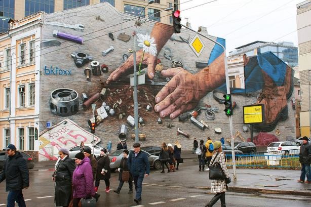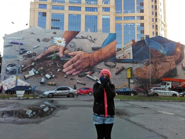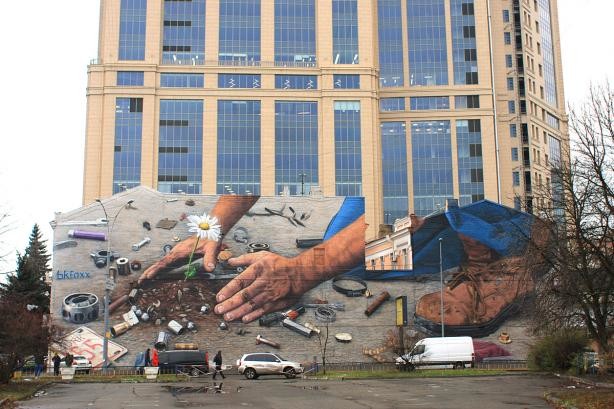 Он изображает человека, который сажает цветочек посреди грязной земли. Автором этого произведения выступила художница из Нью-Йорка, которая подписывается псевдонимом BKFOXX. На соз0дание этого мурала ушло около трёх недель из-за плохой погоды в украинской столице.