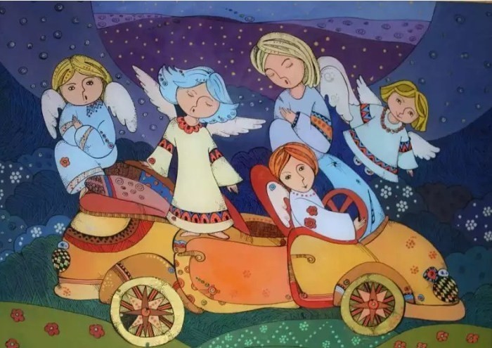 Обладая искромётным чувством юмора и безудержной фантазией, вдохновлённая детскими воспоминаниями и бабушкиными сказками, современный украинский художник Натали Курий-Максымив создала замечательную серию работ, в которой мастерски объединила наивно-радостное видение окружающего мира с элементами национального колорита. Но самое удивительно то, что все её картины написаны не на привычных холстах, а на холодном, тонком и таком привередливом стекле...