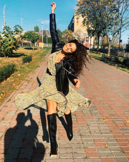 На своей странице в Instagram артистка опубликовала снимки, на которых запечатлена в воздушном платье в цветочный принт, которое красиво развевается, а также черной кожаной куртке и высоких сапогах.
